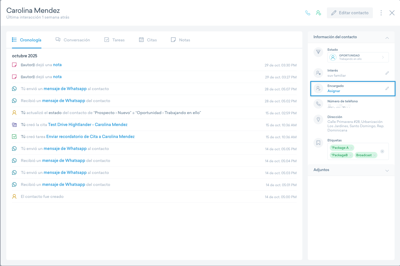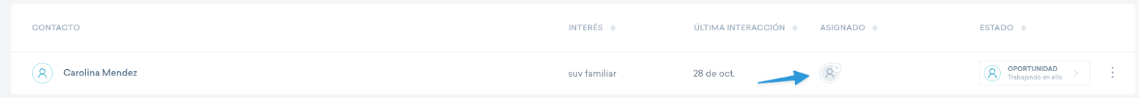 La asignación de un contacto define quién es el usuario responsable de darle seguimiento. Esto es fundamental para que tu equipo trabaje de forma ordenada y eficiente.