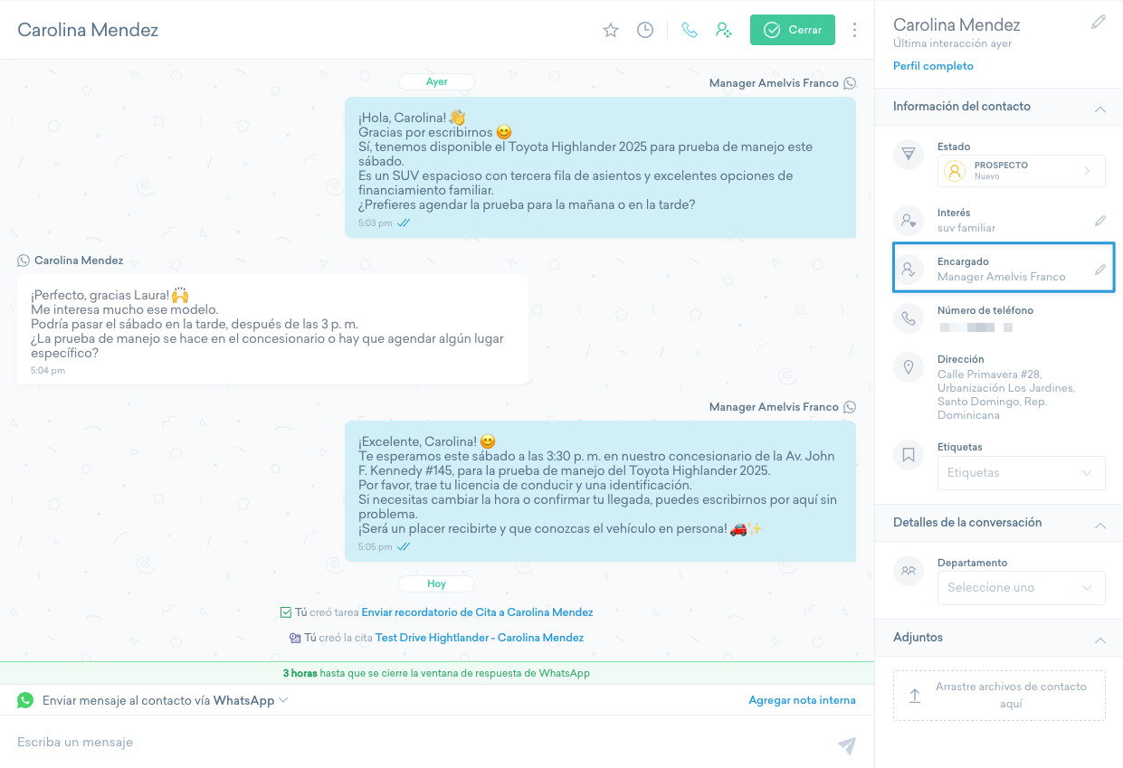 - Selecciona la conversación del contacto que quieres asignar.