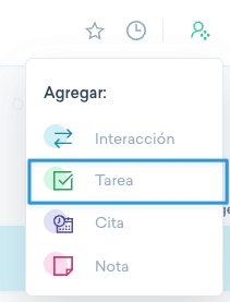 Utiliza esta opción para crear tareas internas y como opción alternativa para agregar tareas que están relacionadas con un contacto específico.
