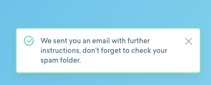 - Verás una notificación en la esquina inferior derecha indicando que enviamos un correo con los siguientes pasos.