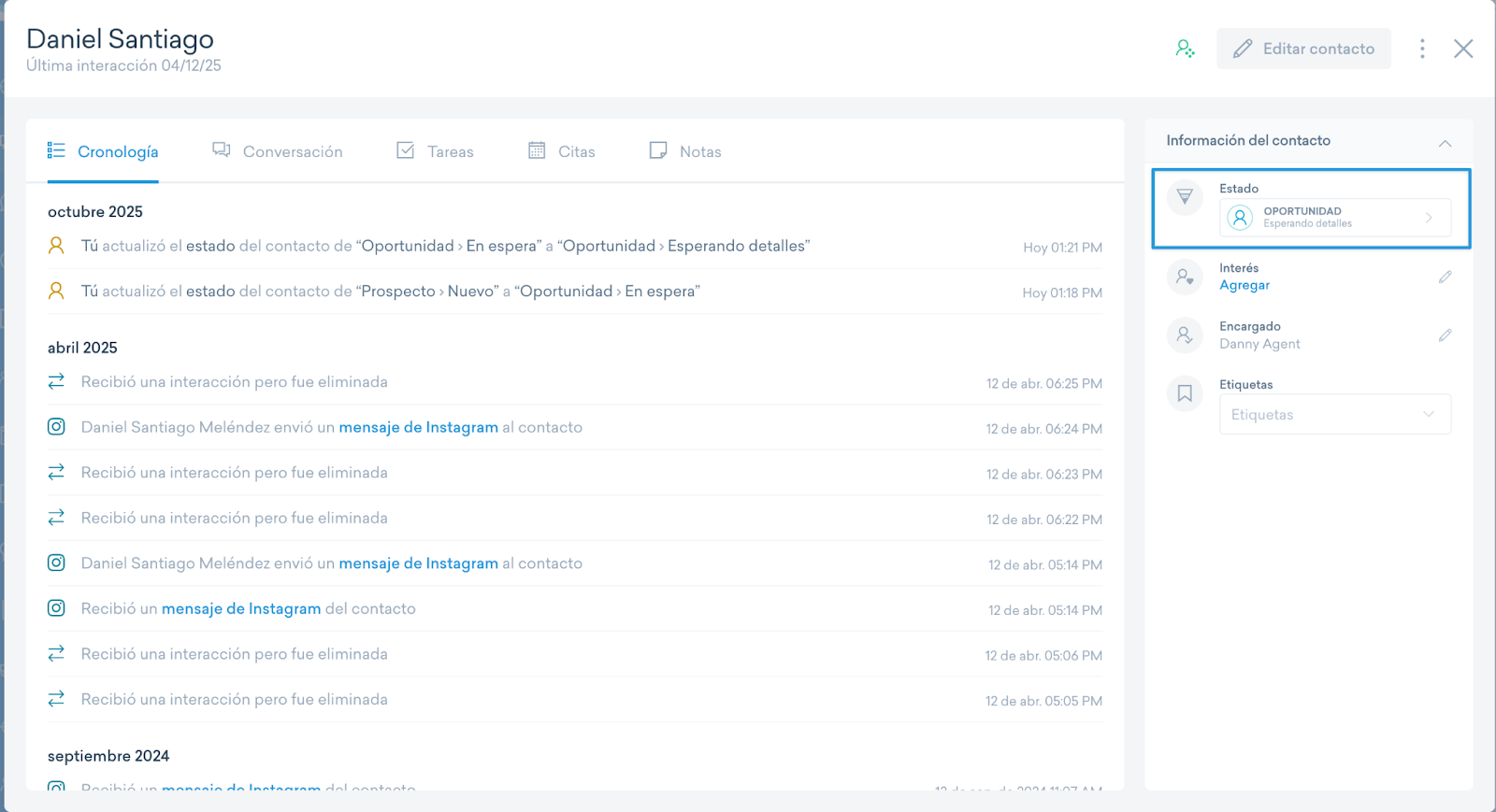 Actualizar el estado de tus contactos es clave para llevar un control claro y ordenado de tu proceso de ventas. Es un proceso sencillo que te ayuda a no perder ninguna oportunidad